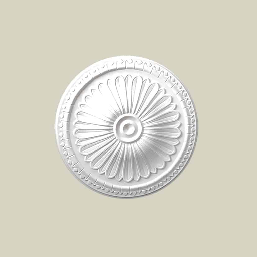 Rozeta wykonana jest z poliuretanu – materiału odznaczającego się lekkością, równocześnie trwałością i wysoką estetyką. Jest odporna na działanie wilgoci.