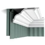 Listwa karniszowo-sufitowa C340 to lekka, biała listwa wykonana z poliuretanu – materiał o wysokiej gęstości pozwalający uzyskać wyraziste szczegóły.