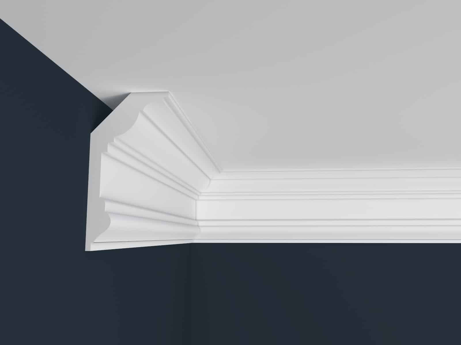 Sztukateryjna listwa sufitowa to lekka, biała listwa wykonana z twardego polistyrenu ekstrudowanego (styrodur).