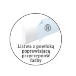 Listwa jest biała, może być jednak pomalowana na dowolny kolor, jest bowiem pokryta specjalną powłoką poprawiającą przyczepność farb. Można stosować wszelkie farby na bazie wody.