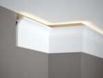 Listwa sufitowa QS011 to nowoczesny profil o minimalistycznej, ale intrygującej formie. Profil został wykonany z odpornego na promienie słoneczne i wodę tworzywa PolyForce. Może być instalowany w pomieszczeniach o podwyższonym poziomie wilgotności oraz przy oknach w bezpośrednim nasłonecznieniu. Nie puchnie ani nie zmienia koloru, nawet po wielu latach użytkowania. QS011 stworzono w technologii ScratchShield®. Materiał został ekstremalnie utwardzony, gwarantując wysoką odporność przed zarysowaniami, nawet w bezpośrednim kontakcie z ostrym narzędziem. Listwę można pomalować na dowolny kolor za pomocą farby wodnej. Specjalny primer, którym została pokryta powierzchnia wygładza strukturę i przedłuża trwałość koloru. QS011 posiada technologię LightGuard® która umożliwia stosowane profilu z oświetleniem LED.