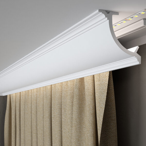 Listwa sufitowa QS011 to nowoczesny profil o minimalistycznej, ale intrygującej formie. Profil został wykonany z odpornego na promienie słoneczne i wodę tworzywa PolyForce. Może być instalowany w pomieszczeniach o podwyższonym poziomie wilgotności oraz przy oknach w bezpośrednim nasłonecznieniu. Nie puchnie ani nie zmienia koloru, nawet po wielu latach użytkowania. QS011 stworzono w technologii ScratchShield®. Materiał został ekstremalnie utwardzony, gwarantując wysoką odporność przed zarysowaniami, nawet w bezpośrednim kontakcie z ostrym narzędziem. Listwę można pomalować na dowolny kolor za pomocą farby wodnej. Specjalny primer, którym została pokryta powierzchnia wygładza strukturę i przedłuża trwałość koloru. QS011 posiada technologię LightGuard® która umożliwia stosowane profilu z oświetleniem LED.